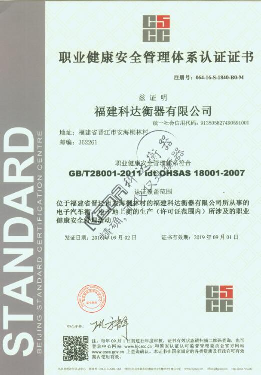 科達(dá)地磅通過職業(yè)健康體系認(rèn)證
