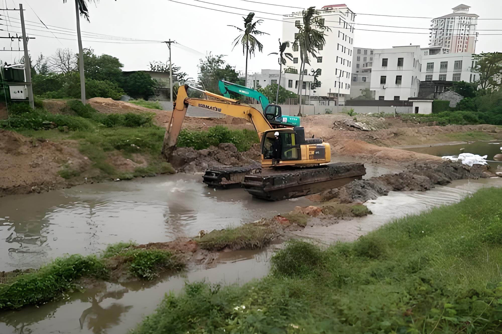 其次是淤泥狀態(tài)不穩(wěn)定。汛期的河水會(huì)帶動(dòng)河底沉積的淤泥翻滾,原本板結(jié)的淤泥變成流動(dòng)的泥漿,密度變得不均勻。挖機(jī)鏟斗下去,可能一斗下去撈上來的大半是水,真正的淤泥沒多少;而且被攪動(dòng)的淤泥會(huì)快速擴(kuò)散,剛清理完一片區(qū)域,下游的淤泥又被沖過來,等于做了 “無用功”。