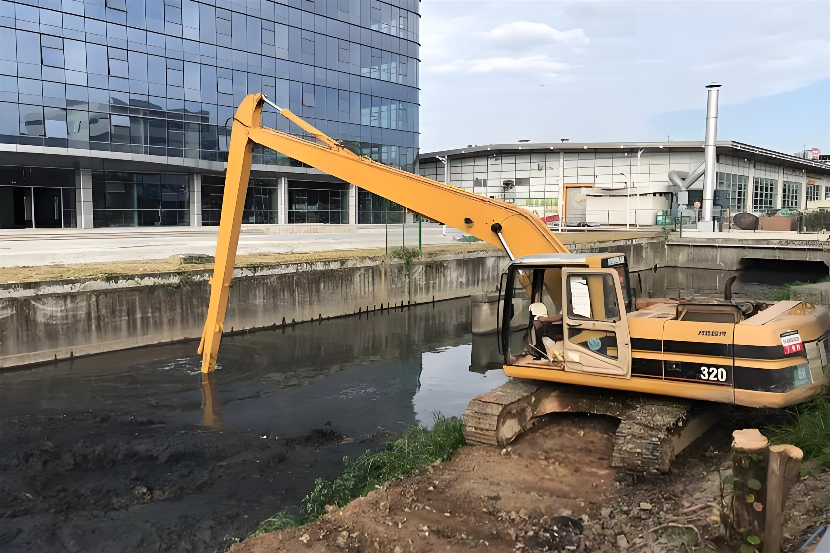 普通河道清淤用常規(guī)的履帶式挖機就行,配上普通挖斗或清淤斗,甚至可以用長臂挖機站在岸邊作業(yè),效率很高。如果水深超過 3 米,加個浮箱改成水上挖機,基本能應(yīng)對大部分場景。