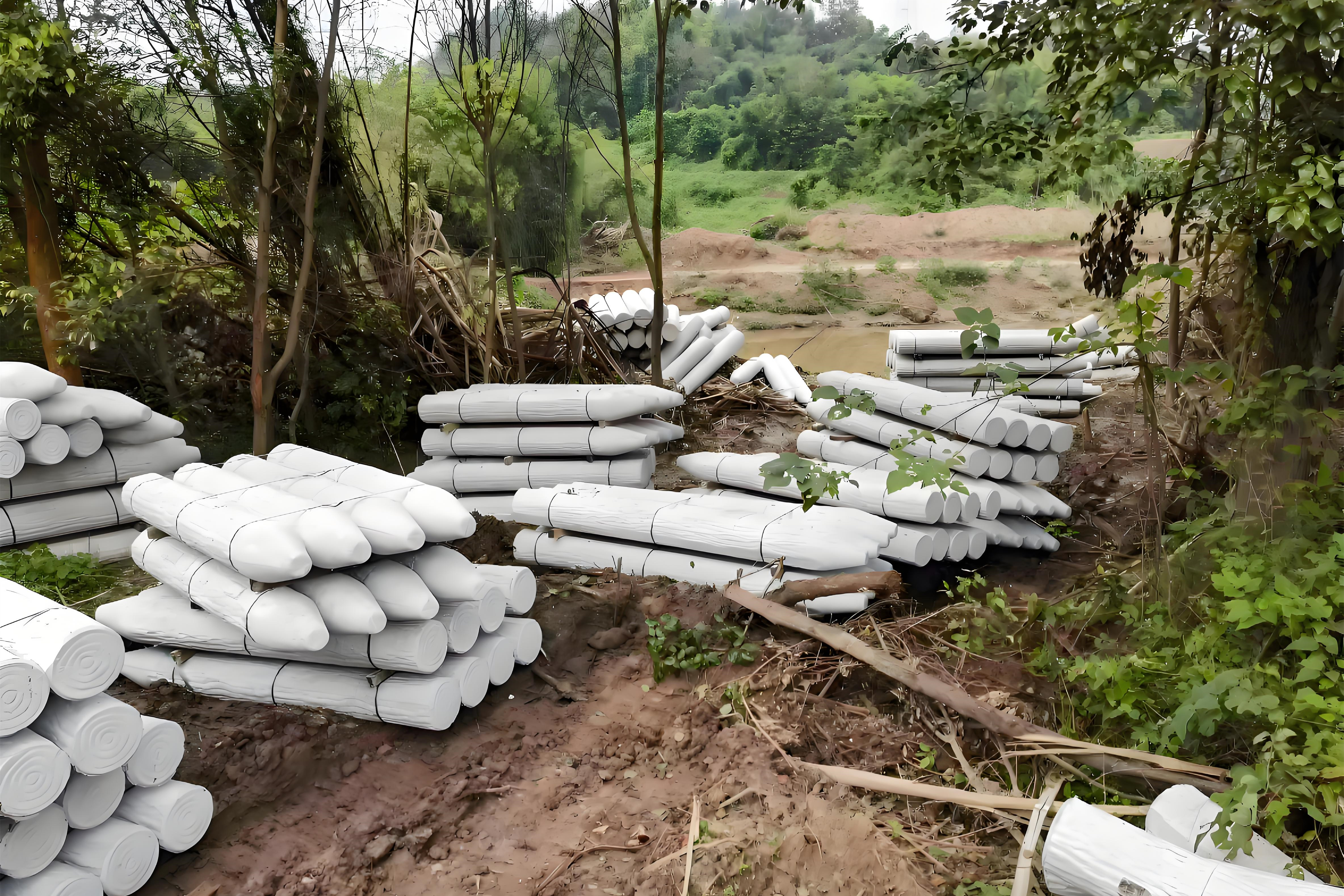 - 先清理樁體周圍的淤泥、雜物,然后在樁體外側(cè)(靠近水流的一側(cè))堆放沙袋或塊石,形成防護層,減少水流對地基的沖刷;