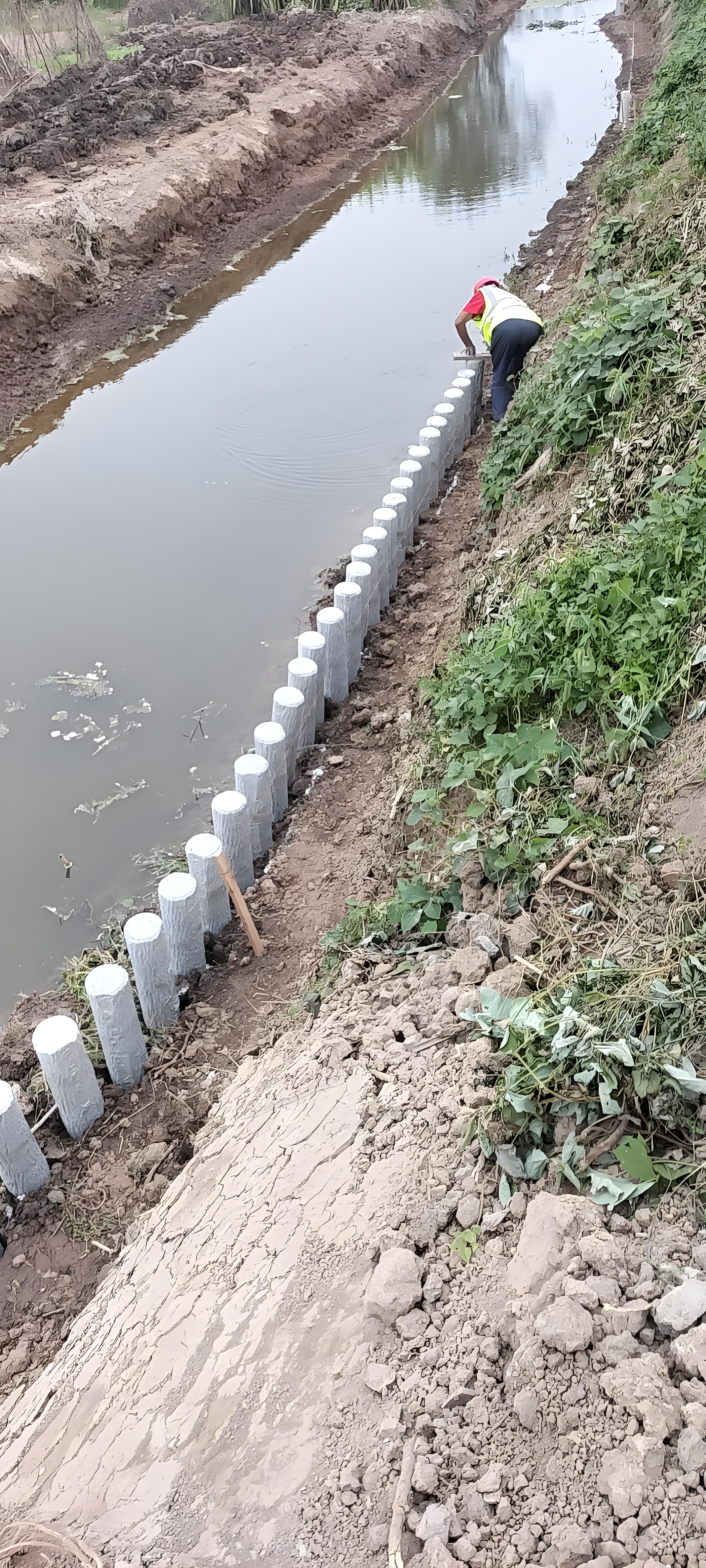 - 河道護岸:打樁后在樁之間填沙袋(防水流沖刷樁體);